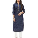 Women’s Pure Cotton Jaipuri Printed Straight Kurti (Ready To Wear,)-S