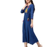 Women’s Rayon Dobby Embroidered A-line Ethnic Maxi Kurta Dress (BlueSize:XL-Colour: Blue