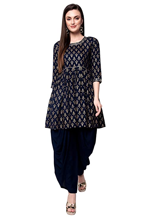 Be the first to review “Women’s Rayon Gold Print Kurta With Dhoti Set-2XL-Blue”