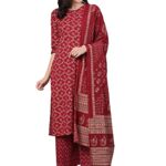 Women’s Rayon Printed Straight Kurti with Palazzos and Dupatta Set