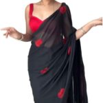Be the first to review “Women’s Ready To Wear, Dyed Chiffon Saree With Unstitched Blouse – Black”