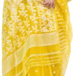 Women`s Resham Dhakai Jamdani Bengal Pure Cotton Handloom Saree Diamond Queen Design