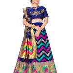 Women’s Semi-Stitched Art Silk Lehenga Choli with Dupatta -Navy Blue