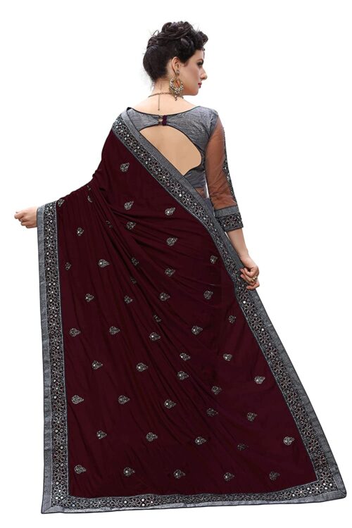Women’s Silk Embroidery Half Half Mirror Work Saree With Blouse Piece-Brown