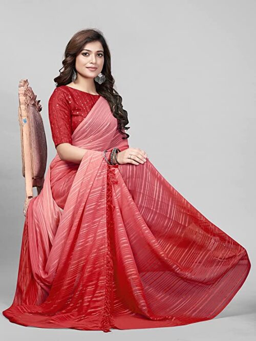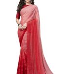 Women’s Silk Saree With Blouse Piece-:Pink and Red