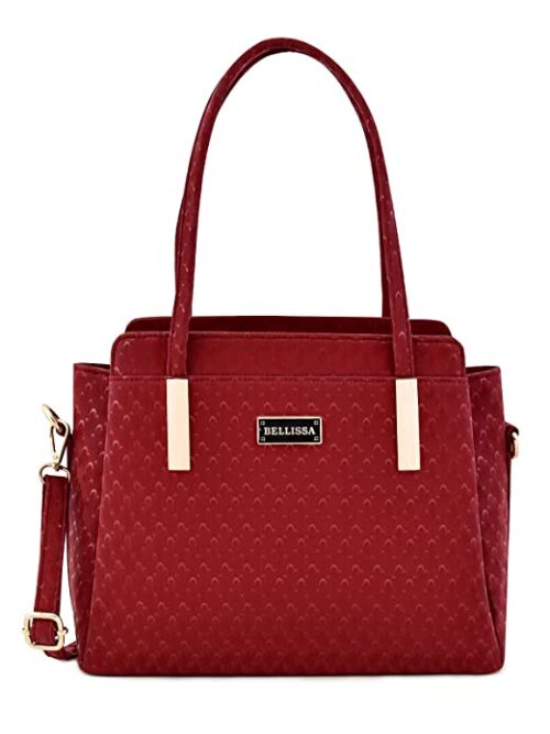 Women’s Solid Pattern Artificial Leather Satchel Bag | Ladies Purse Handbag Tote Bag Shoulder Crossbody | Girl’s Office & College Shoulder Ba – Red