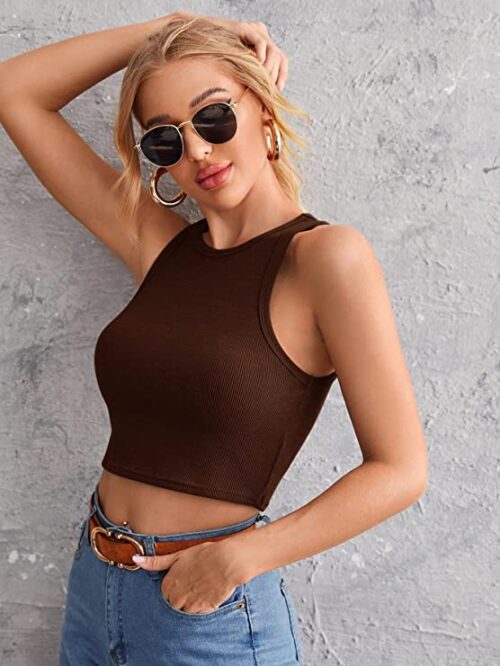 Be the first to review “Women’s Solid Ribbed Crop Tank Tops for Women-L-BROWN”