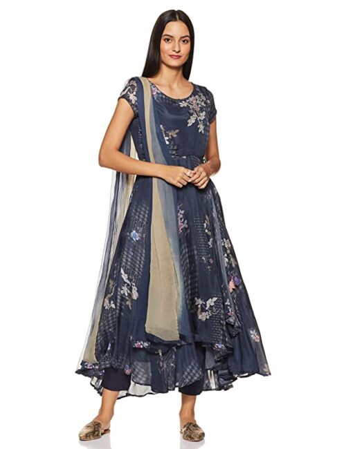 Women’s Synthetic Salwar Suit Set-Navy Blue