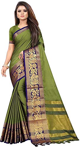 Women’s Uppada Pattu Cotton Silk Saree With Blouse Piece-Green