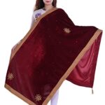 Women’s Velvet Heavy Work Stole with Tassel (SNWVHMS456, Maroon, Free Size)