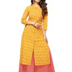 Be the first to review “Women’s Yellow Coloured Cotton Jaipuri Ikkat Printed Kurti-M”