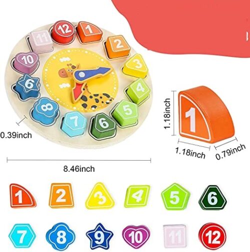 - Wooden Shape Color Sorting Clock Teaching Time Number Blocks Animal Patterns Puzzle Stacking Sorter Early Learning Educational Toy Gift for 3 Year Old Toddler Baby Kids