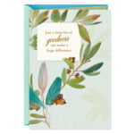 Thak-you greeting card reminds a friend or loved one that they are appreciated for the help they provided you. Greeting features a pretty branches and berries design with embossing and metallic ink accents.